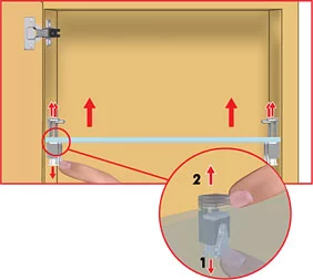 - съемный фиксатор позволяет устанавливать и снимать полки без демонтажа вкладных фасадов