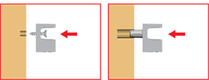 1. Установка на боковину осуществляется при помощи самореза диаметром 3,5 мм или устанавливается в заранее просверленное отверстие в боковине диаметром 5 мм.