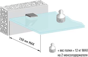 - нагрузка 12 кг на 2 менсолодержателя при глубине полки 150 мм