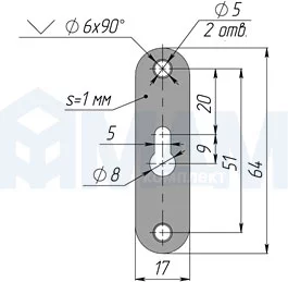 Навес-планка со средним отверстием под крепление, 64 мм: 100R