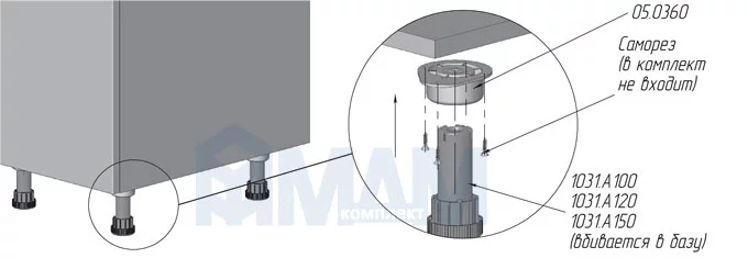 1031 Ножка пластиковая без базы, высота 120 мм: 1031.A120