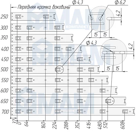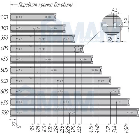 Направляющая шариков. полного выдвижения оцинк. 450мм: 1045-18 Z