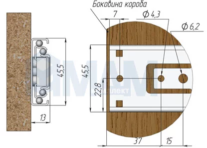 Направляющая шариков. полного выдвижения оцинк. 700мм: 1045-28 Z