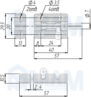 Мебельный шпингалет, 30х40: 1901M40