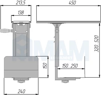 - у держателя широкий диапазон регулировок по высоте и ширине для фиксации различных системных блоков: по высоте — от 320 до 520 мм, по ширине — от 150 до 250 мм;