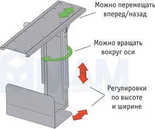 - за счет продуманного конструктива крепления системный блок можно перемещать вперед/назад и вокруг своей оси, что позволит облегчить доступ к необходимым проемам.