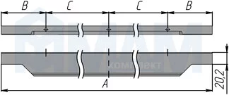 Профиль-ручка 900мм крепление саморезами алюминий полированный: 25.900.AS