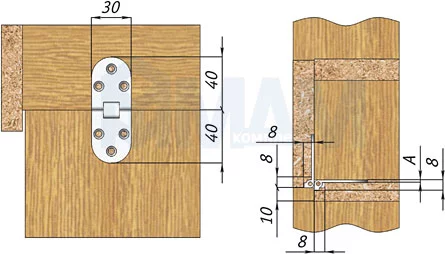 Установка: требует фрезеровки паза глубиной 2 и 8 мм