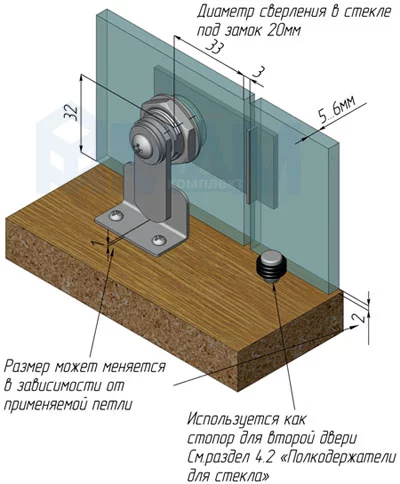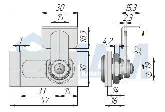 Замок для 2-х дверей, со сверлением, поворотный + отв. планка, хром: 410-3 CR