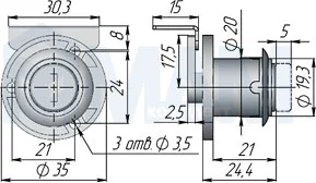 Замок для 1-ой двери, кнопочно-поворотный + отв. планка, хром: 503-23 CR