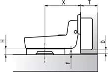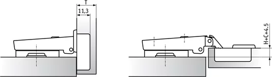 T – толщина двери; B – толщина боковины; С – изгиб плеча петли;