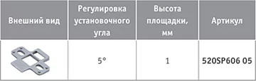 Стандартная площадка: регулировка фасада по высоте +/- 2 мм