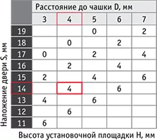 S – наложение; H – высота устан. площадки; L – миним. зазор;