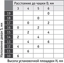 S – наложение; H – высота устан. площадки; L – миним. зазор;