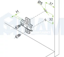 Применение: для крепления петель HARMONY к боковине шкафа (также подходят для петель Integra Slowmotion)