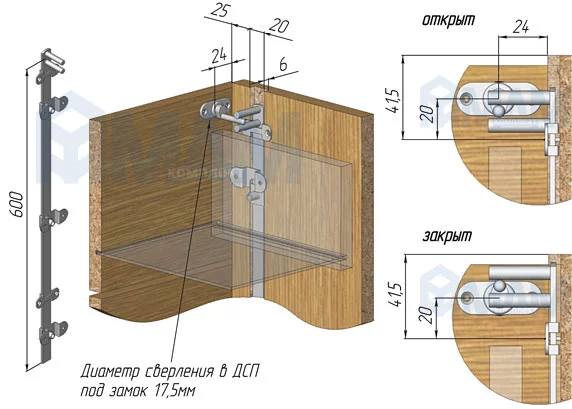 Замок для 3-х и более ящиков, поворотный, хром матовый: 666/S 600 MCR