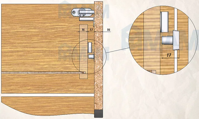 Внимание! Упоры для центральных замков необходимо подпиливать (см. схему)