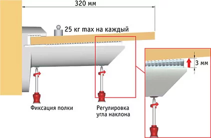 Регулировка угла наклона полки