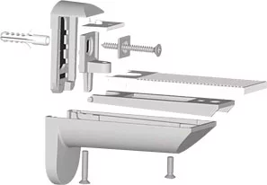 - менсолодержатели для стеклянных и деревянных полок, отдельно крепящихся к стене