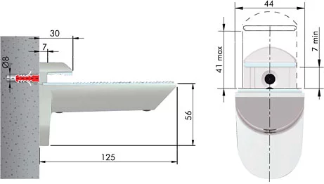 - менсолодержатели с возможностью регулировки угла наклона полки, что позволяет компенсировать неровности стены