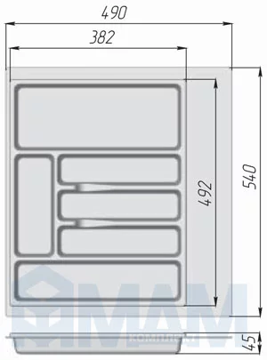 Лоток кухонный для ящика 600 мм, серый: 73.60.GR