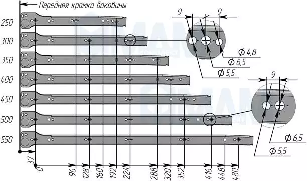 Разметка дана для отверстий под веровинт EC 6.0X11.5.