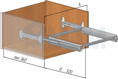Ширина навесного аксессуара = внутр. размер шкафа – 90 мм