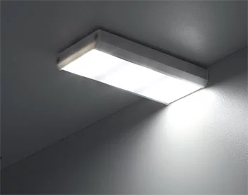 Автономный светодиодный светильник для подсветки внутри шкафов, гардеробных, корпусов верхнего яруса и выдвижных ящиков. При движении объекта в пределах области реагирования датчика светильник включается. Выключение происходит через установленный период при условии отсутствия движения в зоне действия датчика.