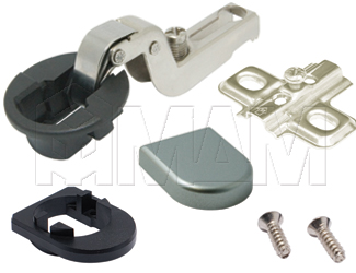 ![]() S – наложение; H – высота устан. площадки; L – миним. зазор; T – толщина двери; B – толщина боковины; С - изгиб плеча петли; D - расстояние до чашки петли; F – фактический зазор. | Расчет высоты площадки H:![]() |