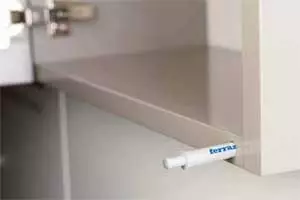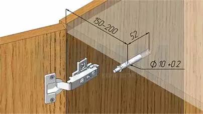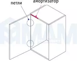 На схеме указано стандартное расстояние от дверцы до амортизатора. Это расстояние должно определяться опытным путем в каждом конкретном случае, так как в большой степени зависит от веса двери, количества петель и требуемой мягкостизакрывания.
