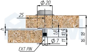 ![]() | Диаметр сверления отверстия под замок 20 мм![]() Без удлиняющего элемента h = 2...5 мм При использовании удлиняющего элемента h = 5...15 мм |