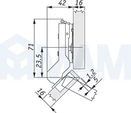 Петля TIOMOS со встроенным амортизатором угловая (+45/110E) накладная: F028138352