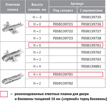 Высота ответной планки H=0![]() | Высота ответной планки H=0![]() |