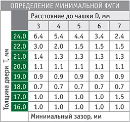 Минимальная фуга рассчитана для дверей со скошенными кромками