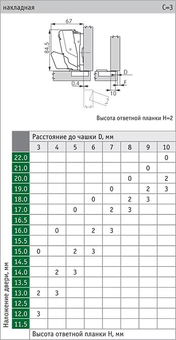 • С нулевым вхождением, т.е. потеря внутреннего пространства равняется нулю (уже при 90°). Можно использовать в шкафах с внутренними выдвижными ящиками