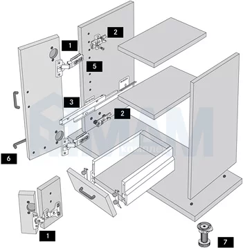 - чашка петли 42/11 мм, можно использовать для комплексной системы мебельных петель;