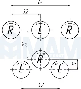 - полкодержатели с шагом 32 мм или одиночных отверстий;