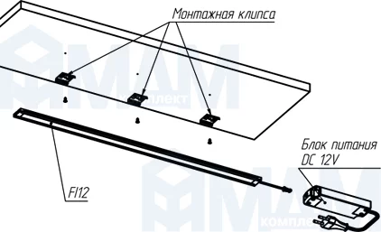 Комплектация: светильник, комплект монтажных клипс и винтов