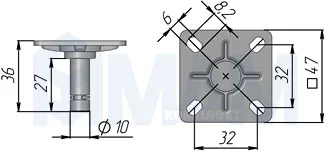 Площадка 47х47 мм для усиленных опор CST79 и CST80: FIX06