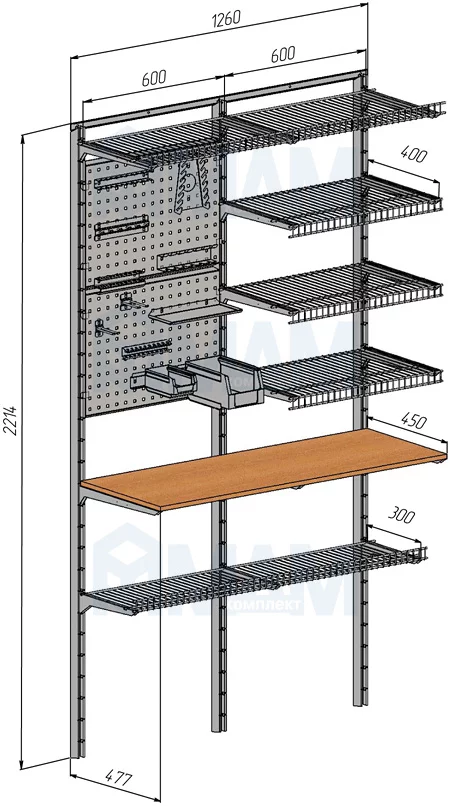 Home Space, гараж ширина 1260мм, глубина 477 мм, 2 проема по 600 мм с аксессуарами: HSK1260x477MT1