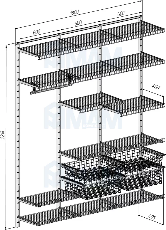 Home Space, гардероб ширина 1860мм, глубина 495 мм, 3 проема по 600 мм: HSK1860x495MT2