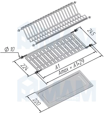 - Комплектация: 2 решетки и поддон из нержавейки