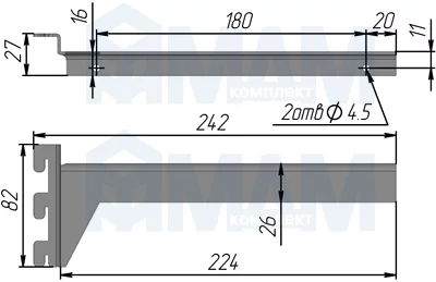 KALI полкодержатель для деревянных полок, комп. на 1 полку, серебро: KL220GR