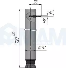 Опора для царгового стола, D50, H720+20 мм, металлик, 4шт.: LEG50X720 MT CC 4