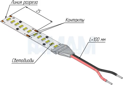 Дополнительная информация: светодиодную ленту не рекомендуется подключать последовательно. Максимальная допустимая длина при последовательном подключении – 5 метров. Если планируется подключать более одной бобины, используется только параллельное подключение.