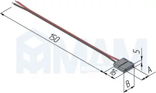 Коннектор 8мм, для 2835, провод 15см к БП: LSA-8-PC-L15-D