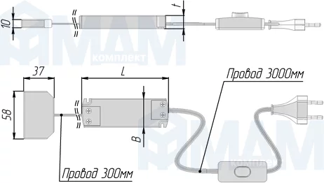 | Блок питания | L, мм | B, мм | t, мм |