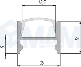 Профиль SM2, накладной быстрого монтажа, 16х12мм, L-2000: LSP-SM2-ALU-2000-0
