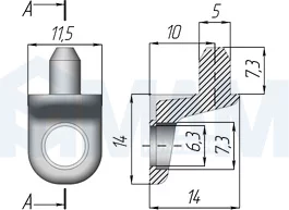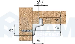 Полкодержатель для деревянных полок с фиксацией, со штоком и отверстием под саморез, никель: ME03ZNL