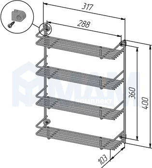 Применение: устанавливается внутри кухонного коробана фасаде, внутри шкафов на боковине,